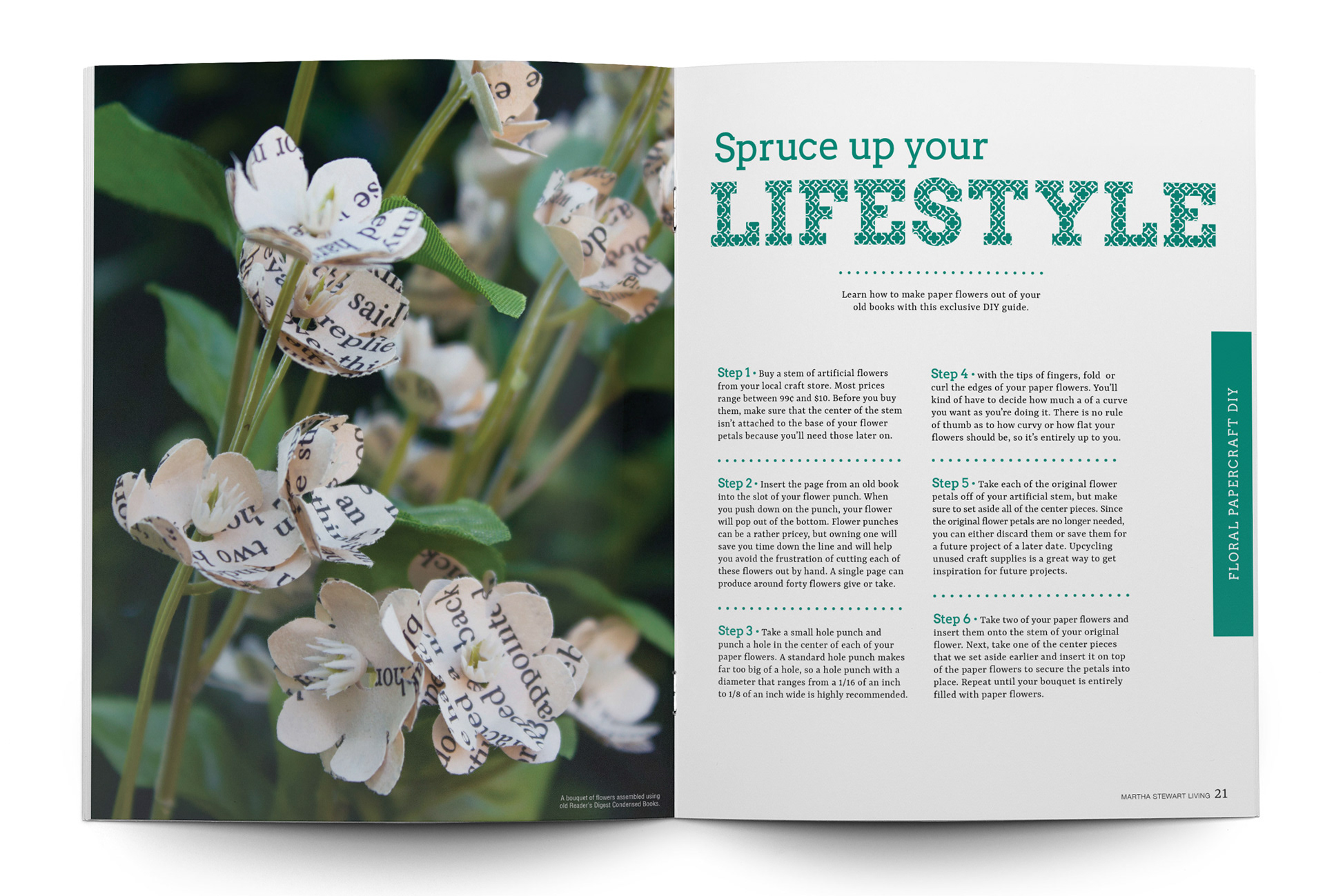 “The Art of Upcycling” is an editorial piece about process of converting old or discarded materials into objects of greater value or use. For each spread, I wrote the copy, took the photographs, and composed the layouts.